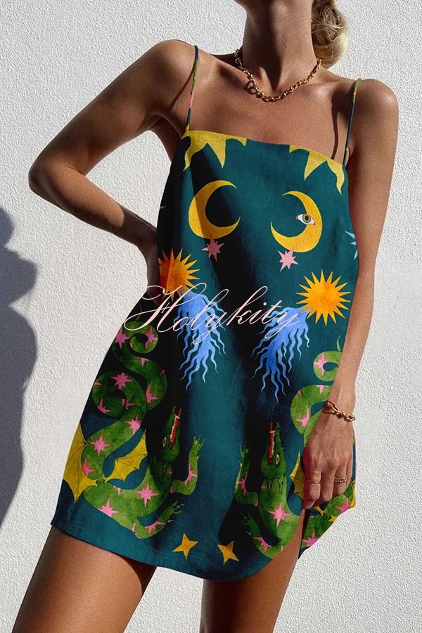 Sun and Done Linen Blend Unique Print Cami Loose Mini Dress